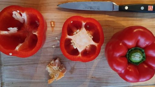 Snijd de top-deksels van de paprika's en maak deze van binnen schoon.